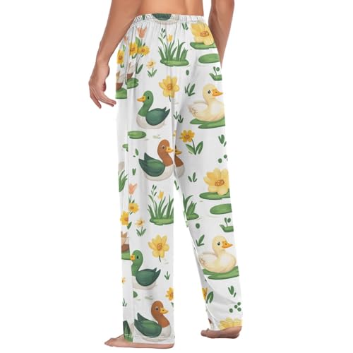 Pigsaly Pajama Pants Duck Flowers Wildlife Animal Men's Pajama Bottoms Lounge Sleepwear PJs Sleep Pants S 3