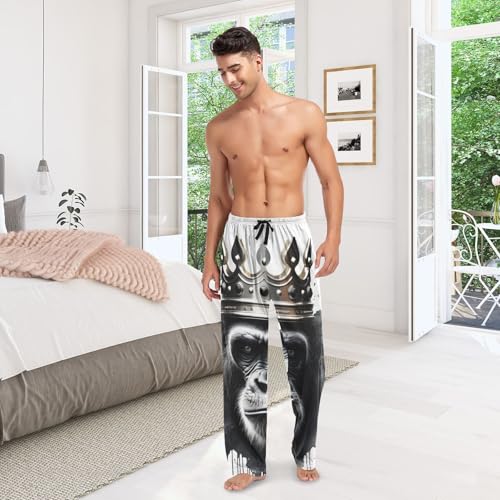 HOT ! Angry Gorilla Crown Pajama Pants for Men Men's Separate Bottoms, Lounge Pants with Pockets S