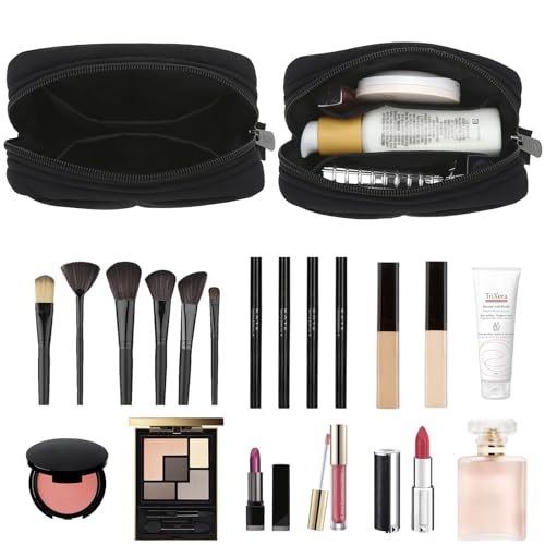 HOT ! Small Makeup Bag for Purse, Quilted Travel Cosmetic Bag, Zipper Cosmetic Pouch Organizer Toiletry Bag, Make Up Bags for Women Girls, Black