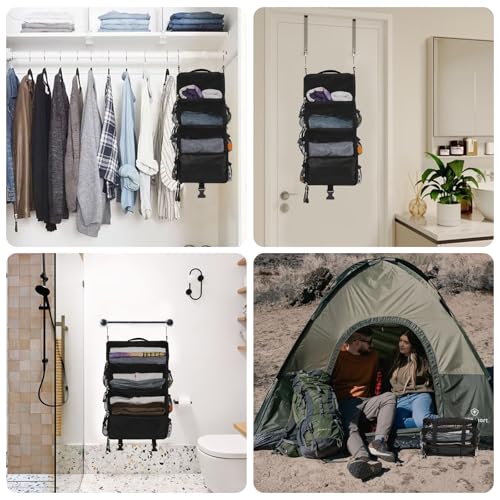 • Versatile: The hanging packing cubes are ideal for travelling, hiking, camping, and business trips, simplifying your journey. They're also perfect for camper vans, RVs and bathrooms or closets in apartments and hotels.