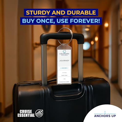 Azamara Cruise Luggage Tag Holders [4 Pack] – Waterproof, Durable Plastic with Steel Loops – Fits All Azamara Ships for Cruising in 2025, 2026 and 2027 – Cruise Essentials by Anchors Up 6