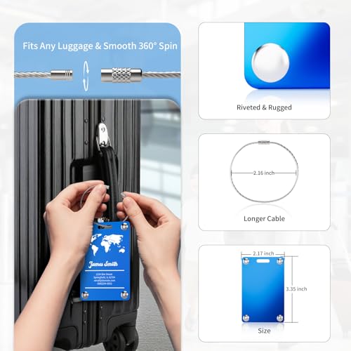 HOT ! Personalized Luggage Tags for Suitcases, Engraved Stainless Steel Custom Luggage Tags for Cruise Travel, Suitcase Identifier Metal Name Baggage Tag (Sleek Bar Blue)