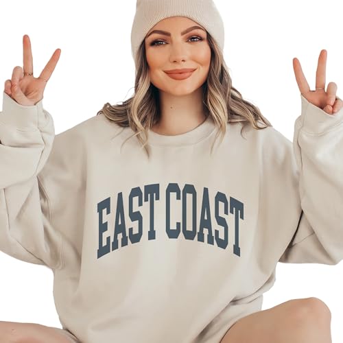 More information about East Coast Sweatshirt, Cute Beach Pullover, Faded Vintage Aesthetic Varsity, Trendy Travel Destination Gift For Him or Her, Unisex Crewneck Sweatshirt
