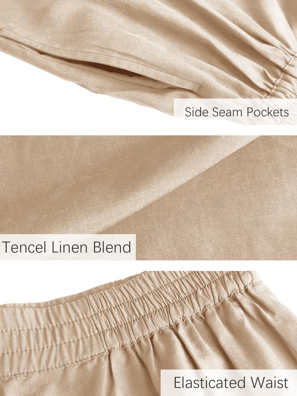 Les umes Women Linen Pants Summer Wide Leg Capri Pants High Waist Loose Cropped Lounge Trousers Culottes 4