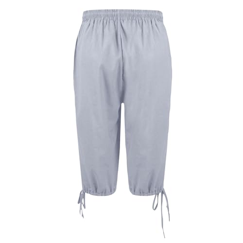 Linen Capri Joggers Womens Casual Knee Length Bermuda Shorts Elastic Waist Vacation Yoga Beach Capris with Pockets 5