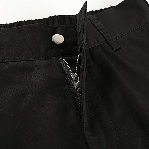 xxxiticat Women's Buckle Cargo Pants High Waist Multi-Pockets Hip Hop Chain Lace Up Motorcycle Plain Loose Baggy Trouser 6