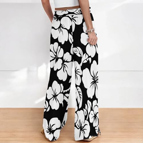 Womens Wide Leg Palazzo Pants Hawaiian Floral Flowy High Waist Casual Travel Trousers 6