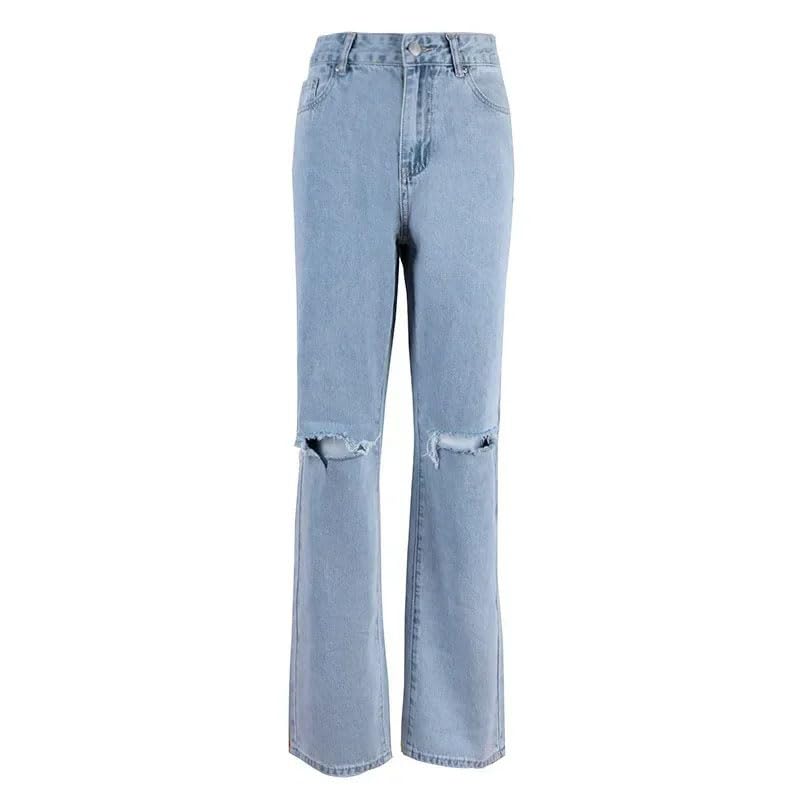 More information about Women Jeans Straight Ankle Length High Waist Zipper Holes Pockets Loose Casual Work Pants