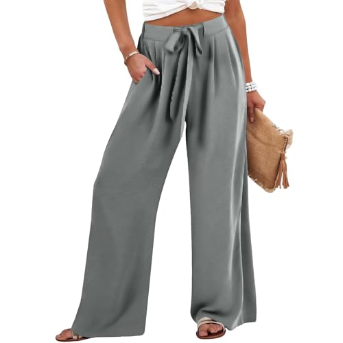 Pantalones pierna ancha Mujeres Largos sueltos con vendaje Cintura sólida bolsillo Pantalones Casuales elástica 1