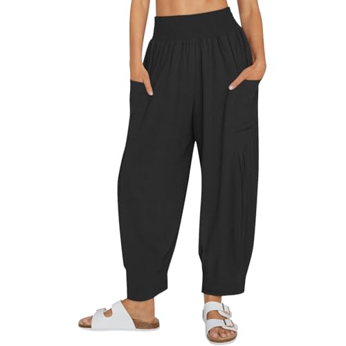 HOT ! Womens Linen Boho Pants Summer Casual High Waisted Baggy Trousers Cargo Lounge Harem Pant 2025 Beach Vacation Outfits