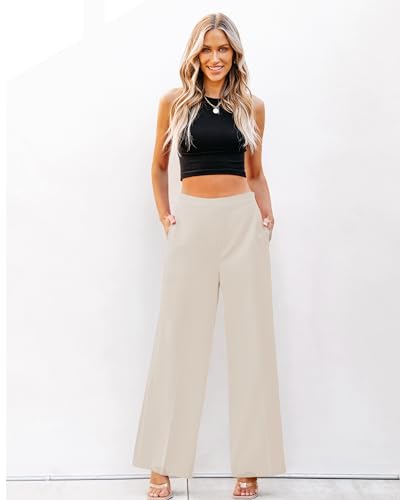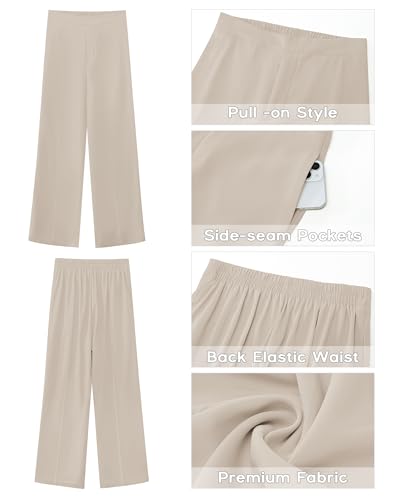 GRAPENT Wide Leg Dress Pants Women High Waisted Pull On Business Casual Work Pants Elastic Waist Dressy Trousers Pockets 6