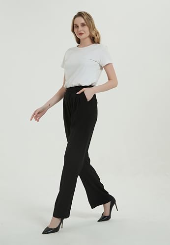 Tronjori Women High Waist Casual Straight Leg Long Business Work Suit Dress Pants Wide Leg Trousers Regular Waistband 1