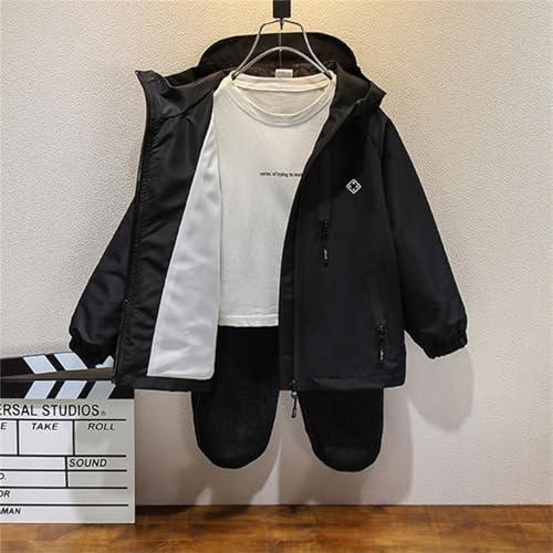 Kids Girls Windbreaker Jacket Solid Color Hooded Coat Teen Fall Winter Long Sleeve Hooded Jacket for Boys 3