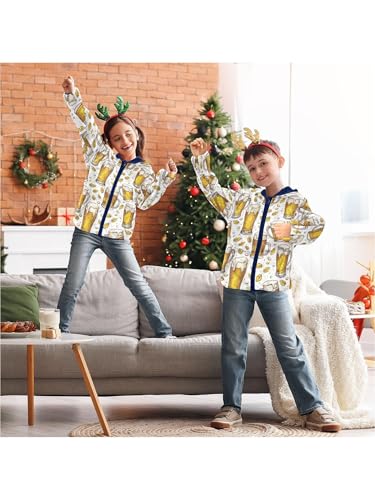 Wheat Leaves Beer Girls Fleece Jacket Girls Fall Jacket Boys Coats Zip Up Hoodie Children Sherpa Warm Outerwear 2-10T 6