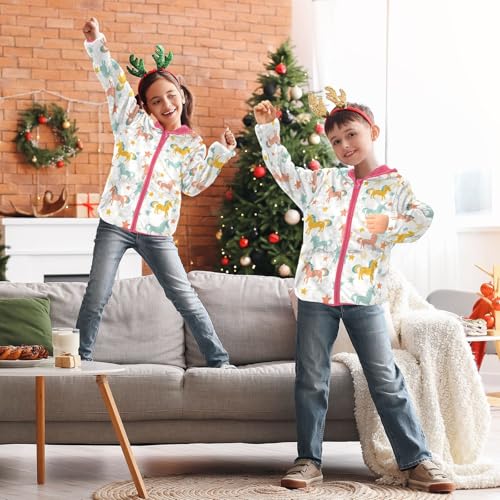 Cartoon Unicorn Star Girls Fleece Jacket Girls Fall Jacket Girl Coats Zip Up Hoodie Children Sherpa Warm Outerwear 2-10T 3