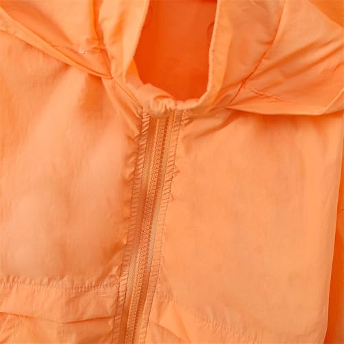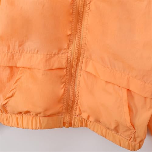 Kids Girls Waterproof Windbreaker Jacket Solid Color Long Sleeve Zip Up Hoodie Boys Lightweight Orange 11-12 Years 6