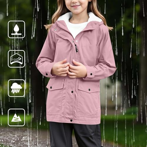 Fleece Rain Jacket for Boy Girl Sherpa Fuzzy Lined Raincoat Thermal Outerwear Waterproof Lightweight Windbreaker Winter Coat 6