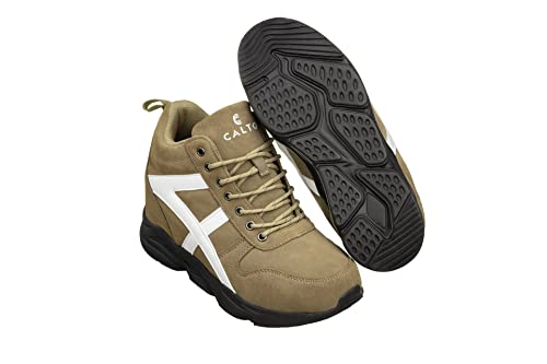 More information about CALTO Men's Invisible Height Increasing Elevator Shoes - Khaki/White Lace-up High-Top Hiking Style Sneaker Boots - 3.6 Inches Taller - S22782 - Size 9 D(M) US