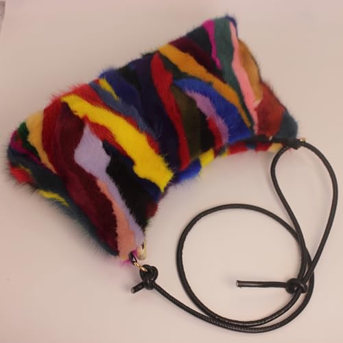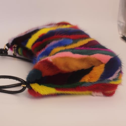 • Vibrant Color-Patchwork Design – This stylish and fashionable handbag features colorful mink fur patches, making it a unique accessory that complements various outfits and adds a pop of color to any look.
