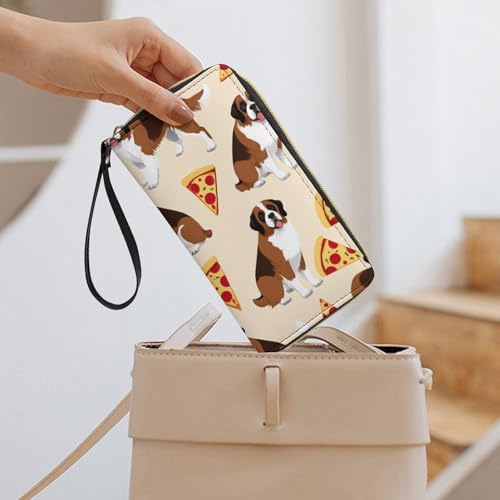HOT ! Leather Wallet for Women, Large Capacity, Zipper Closure, Multiple Pockets, Essential for Travel, Saint Bernard Dog Breed