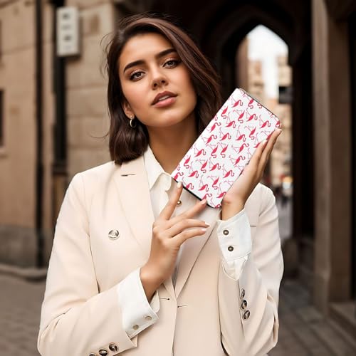 Leather Wallet for Men Women Pink flamingo pattern Print Credit Card Holder with Money Clip, PU Leather Zipper Coin Purse Organizer 1