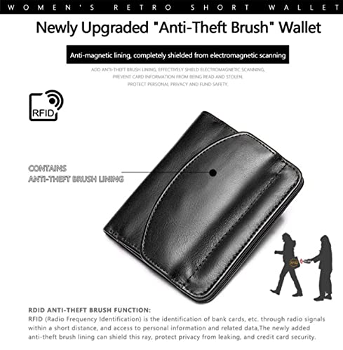 Women's Leather Short Wallet Mini Purse with Coin Proket for Girls Money Bag Cartera Card Holder RFID, Black, One Size 5