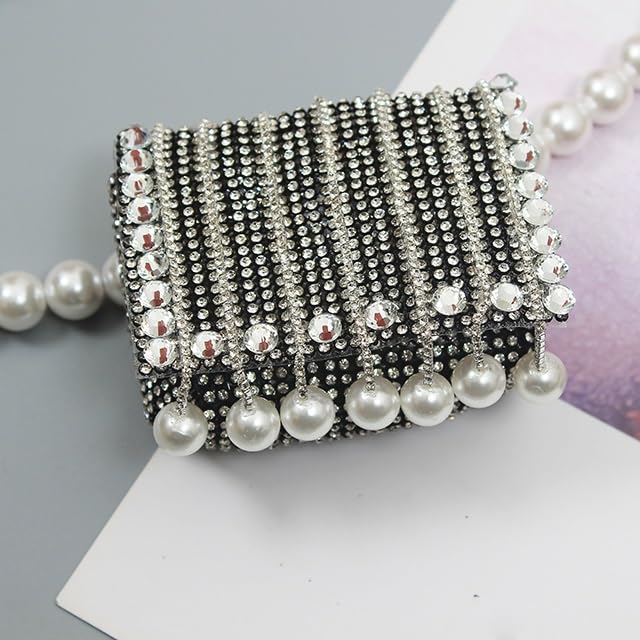 Pearl Chain Small Bag Women's Rhinestone mini Everything Belt Oblique Straddle Bag Waist Chain Accessory Trend(E) 5