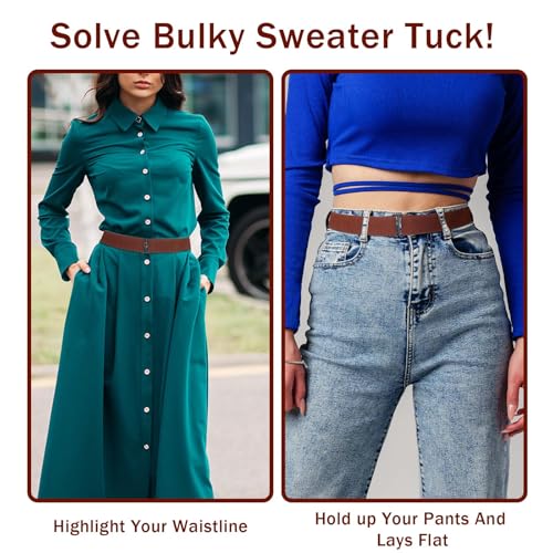 2 Pcs No Show Stretch Belt for Women, Adjustable Sweater Tuck Band, Elastic Belt for Jeans Pants Tuck Sweaters 4