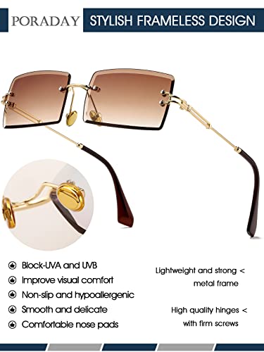 • HD UV400 PROTECTION LENS ►PORADAY Retro rimless rectangle sunglasses anti-glare lenses can block 100% of both UVA and UVB radiation, improve visual comfort by protecting the eye from Ultraviolet Radiation. Make them an ideal choice for sunny days, Protect your eyes in style!