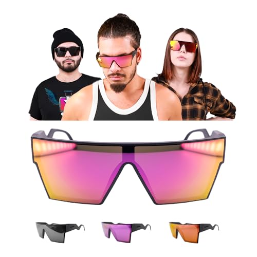 • ✔ Polarized Mirrored Lenses – Reduces glare from water, snow, and roads for crystal-clear vision. Perfect for beach lounging, fishing, and hiking in bright conditions.