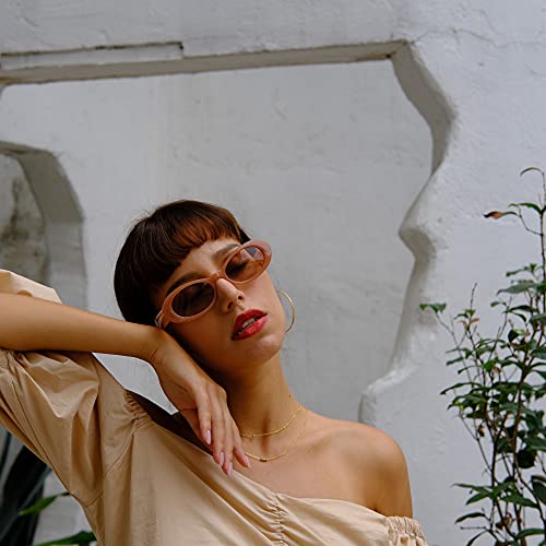 LEMON GRASS Rounded Retro Thick Rimmed Vintage Narrow Oval Flat Lens Slim Wide Arms Fashion Sunglasses 4