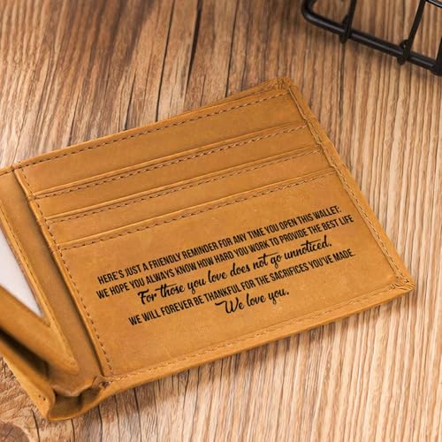More information about Men Leather Wallet Engraved Gift for Dad - Personalized Gift for Fathers Day, Christmas, Birthday - Minimalist Money Pocket Leather (W01)