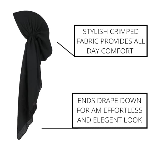 • THE MADISON HEADWEAR Pretied Women Head scarfs Bring Comfort, Convenience, And Class To Your Wardrobe. The Lightweight Fabric Provides A Comfortable And Secure Fit, While The Attractive Crimped Material Adds The Perfect Finishing Touch To Every Look. The Pre-tied Head Covering Is Designed Using SoftAnd Breathable Fabric. The Expandable Elastic Makes This TichelA One Size Fits All.