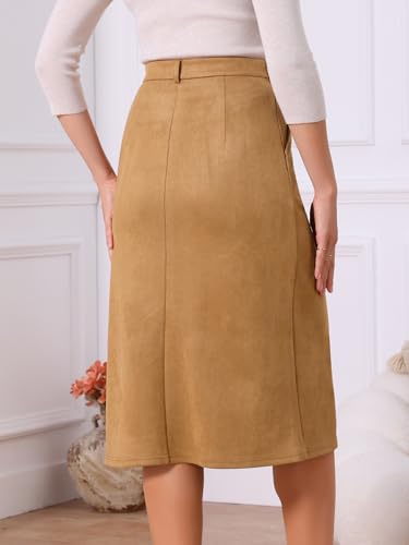 Seta T Women's Faux Suede Skirts Elastic High Waist Fall Winter A-Line Midi Skirt with Pockets 4