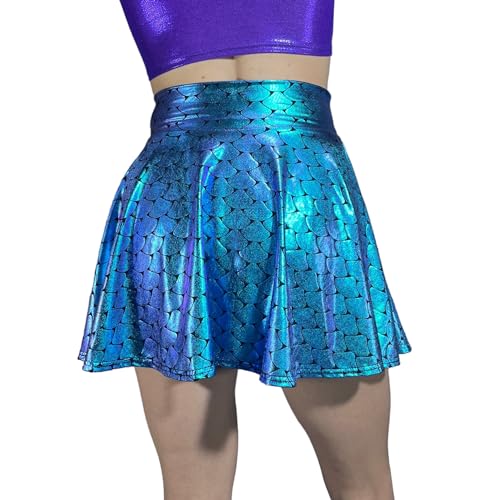 HOT ! Holographic Mermaid Scales Skater Skirt - Made in USA