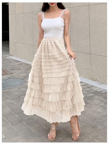 • Features: mesh tulle skirt for women, tiered layered, high waisted, midi skirt, fairycore clothing, solid color, elegant and vintage