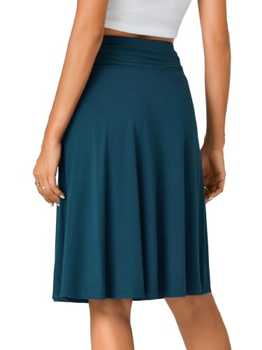 HOT ! LYANER Women's Knee Length Skirt Lightweight Ruched High Waist Skirts Casual Flared Skirt