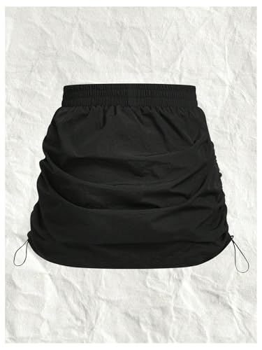HOT ! OYOANGLE Women's Drawstring Side Ruched Cargo Skirt Elastic High Waist Y2K Casual Mini Skirts