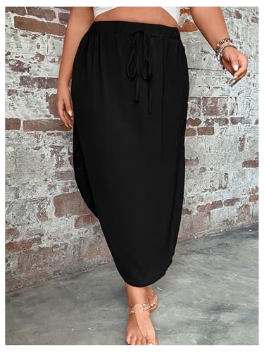 More information about OYOANGLE Women's Plus Size Drawstring High Waisted Side Split Skirt Summer Casual Skirts