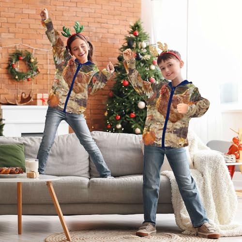 Autumn Rooster Amidst Pumpkins Toddler Fleece Jacket Girl Boys Hooded Fleece Jacket Coat Warm Outwear Zip-up 3-10T 4