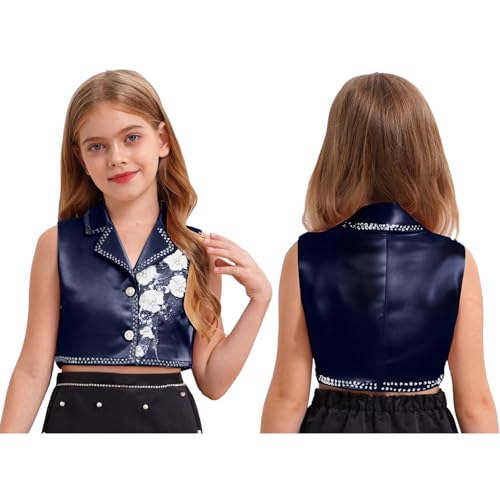 Kids Girls Embroidery Bolero Lapel Sleeveless 2-Button Waistcoat Vest Sparkly Short Jacket Coat 5