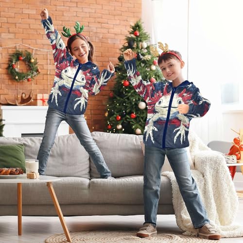 American Flag Axolotl Design Toddler Fleece Jacket Girl Boys Hooded Fleece Jacket Coat Warm Outwear Zip-up 3-10T 4