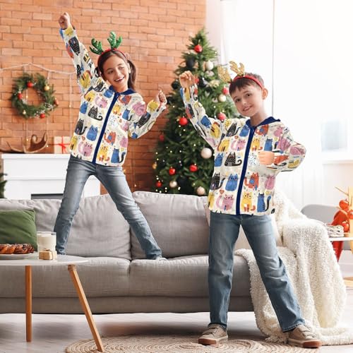 Cute Doodle Cats Girls Fleece Jacket Girls Fall Jacket Girls Zip Up Hoodie Girls Sherpa Jacket 2-10T 2
