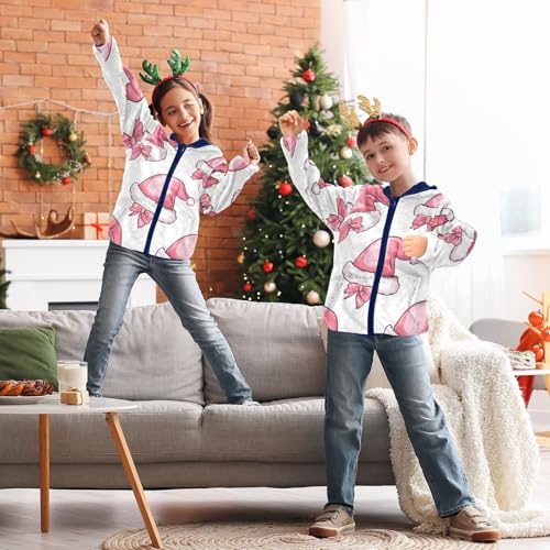 Bow Christmas Hat Girls Fleece Jacket Girls Fall Jacket Girls Zip Up Hoodie Girls Sherpa Jacket 2-10T 5