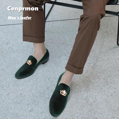 • ☆ ELEGANT DRESS LOAFER-These green loafers are the perfect combination of vintage fashion and modern style. Material is high-quality velvet and feels soft to the touch, a designer gold-toned buckle at vamp for timeless elegance.