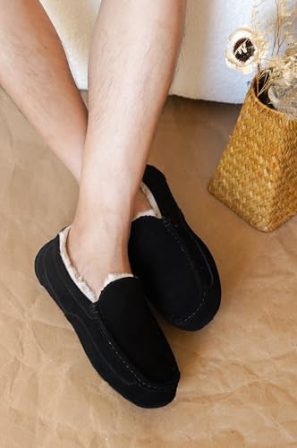 • 𝗦𝗶𝘇𝗲 𝗥𝗲𝗰𝗼𝗺𝗺𝗲𝗻𝗱𝗮𝘁𝗶𝗼𝗻 & 𝗣𝗿𝗲𝗺𝗶𝘂𝗺 𝗤𝘂𝗮𝗹𝗶𝘁𝘆 𝗠𝗮𝘁𝗲𝗿𝗶𝗮𝗹: For the perfect fit, we recommend sizing up half a size. These Oswin mens fuzzy slippers are crafted with a 100% genuine suede upper, providing a soft and luxurious texture. The high-quality suede not only feels great but is also exceptionally durable, making these slippers for men a long-lasting choice. These slippers for men combine timeless craftsmanship with everyday comfort.