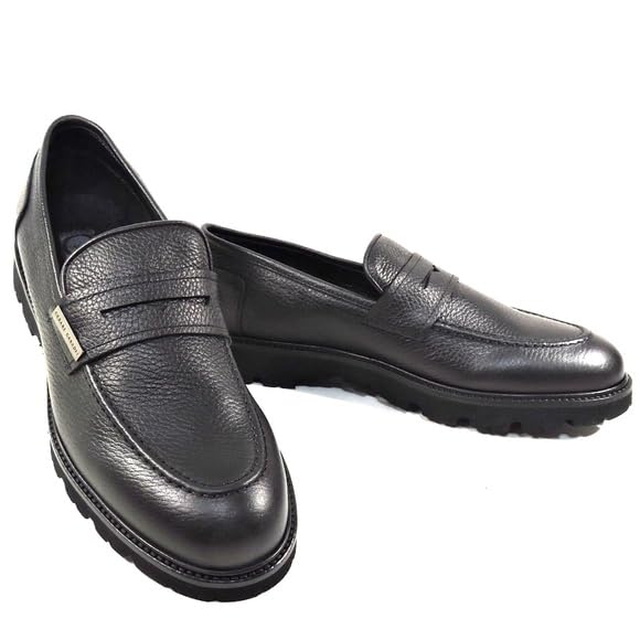 HOT ! Casadei Men's Black Soft Leather Comfort Penny Loafers, Lug Sole