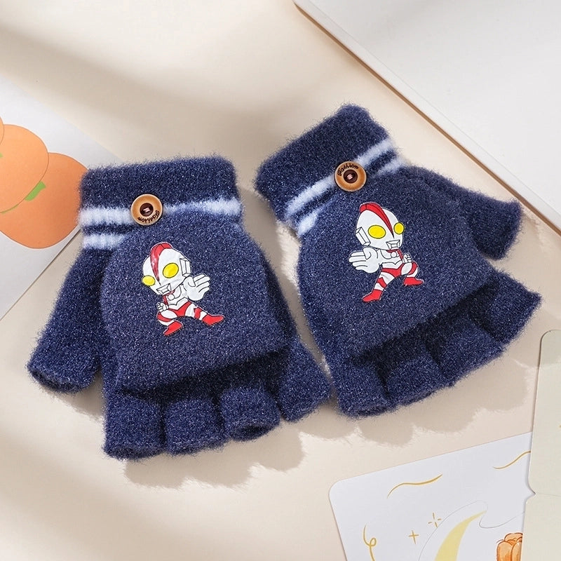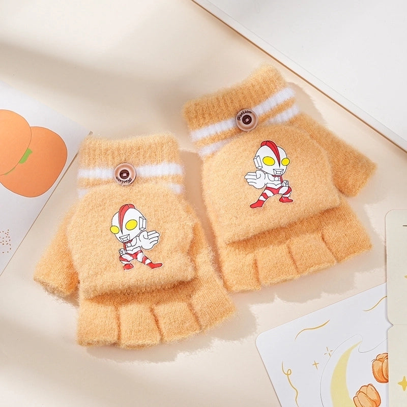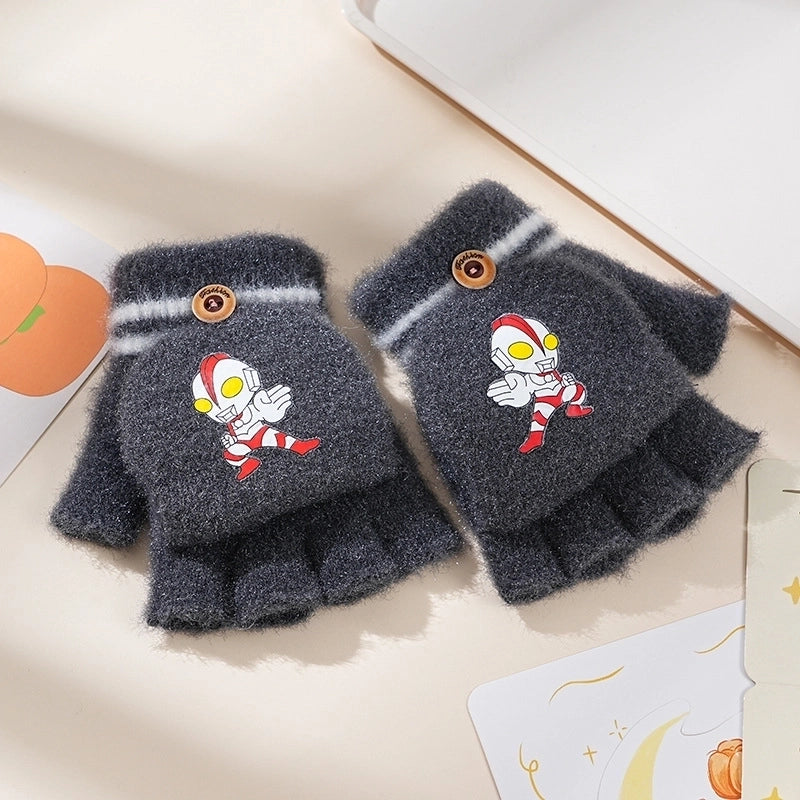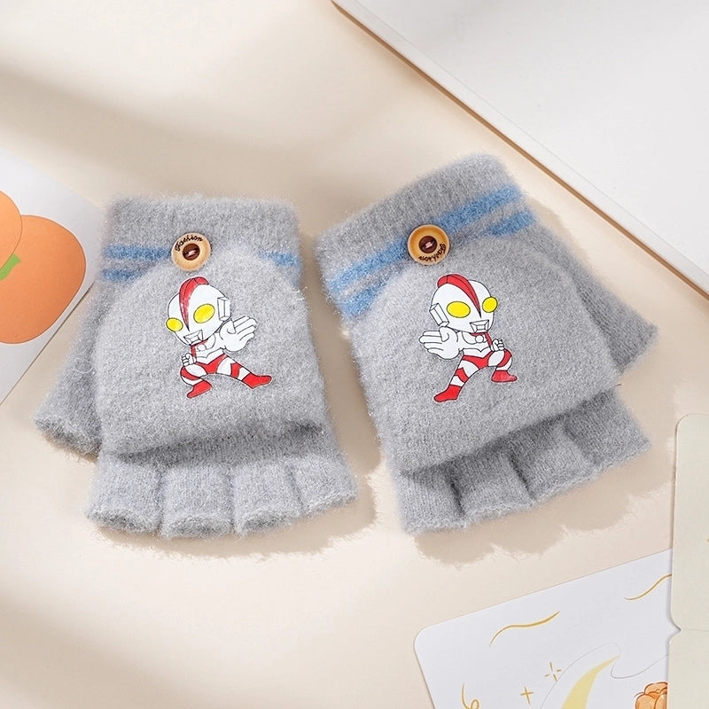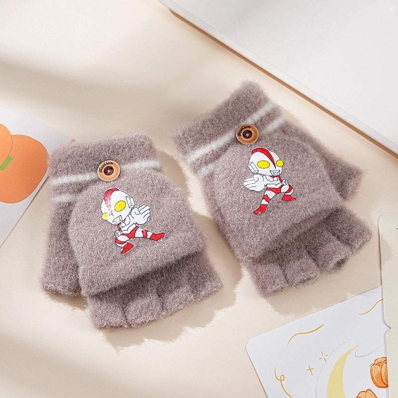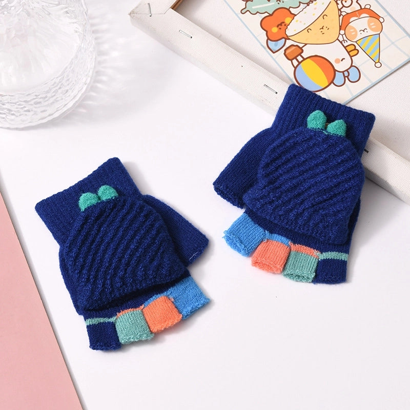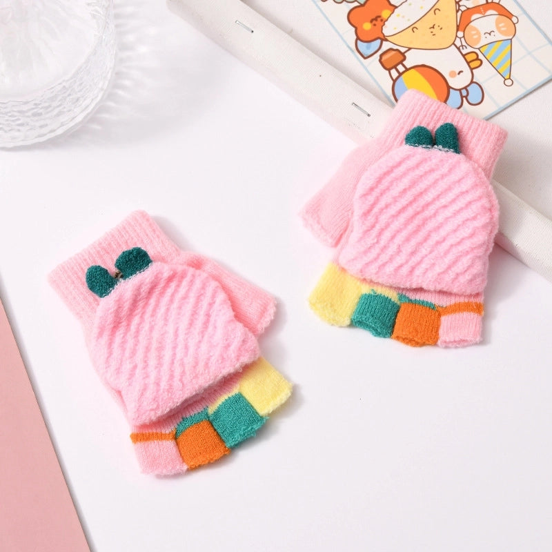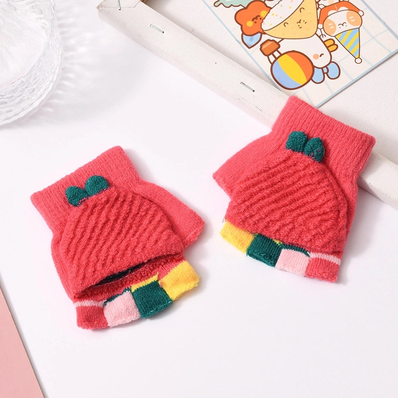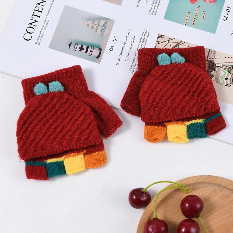 Autumn And Winter Children's Flip Knitted Gloves Half Finger Dual-purpose Boys And Girls Cute Warm Exposed Fingers Children Students 1
