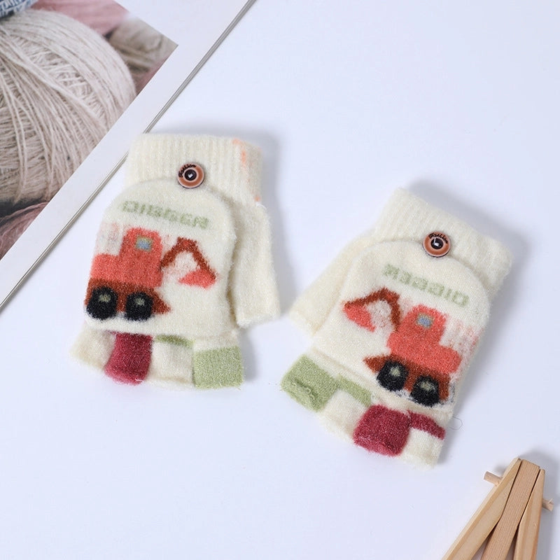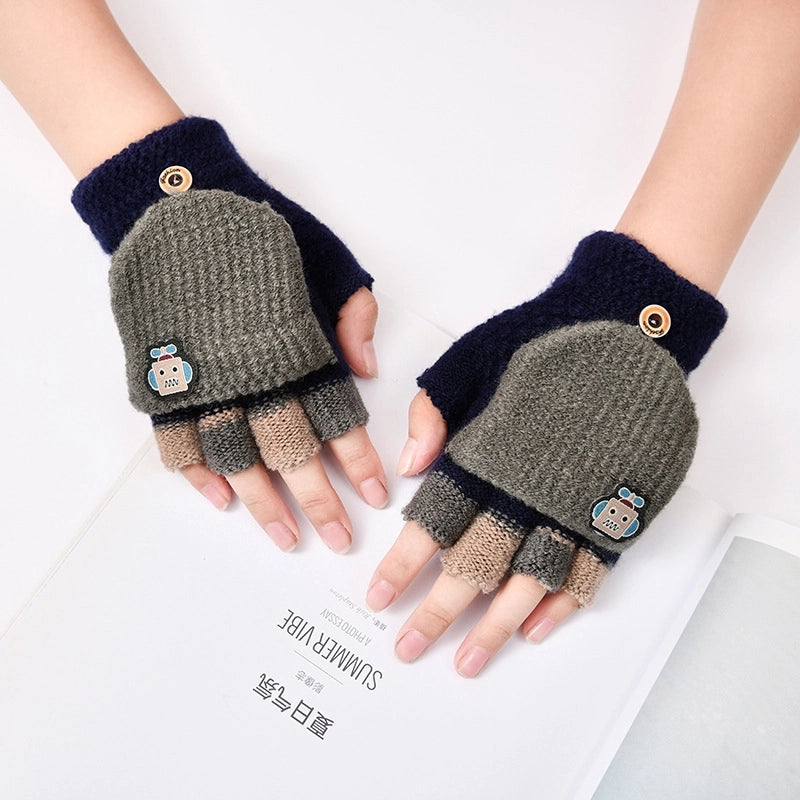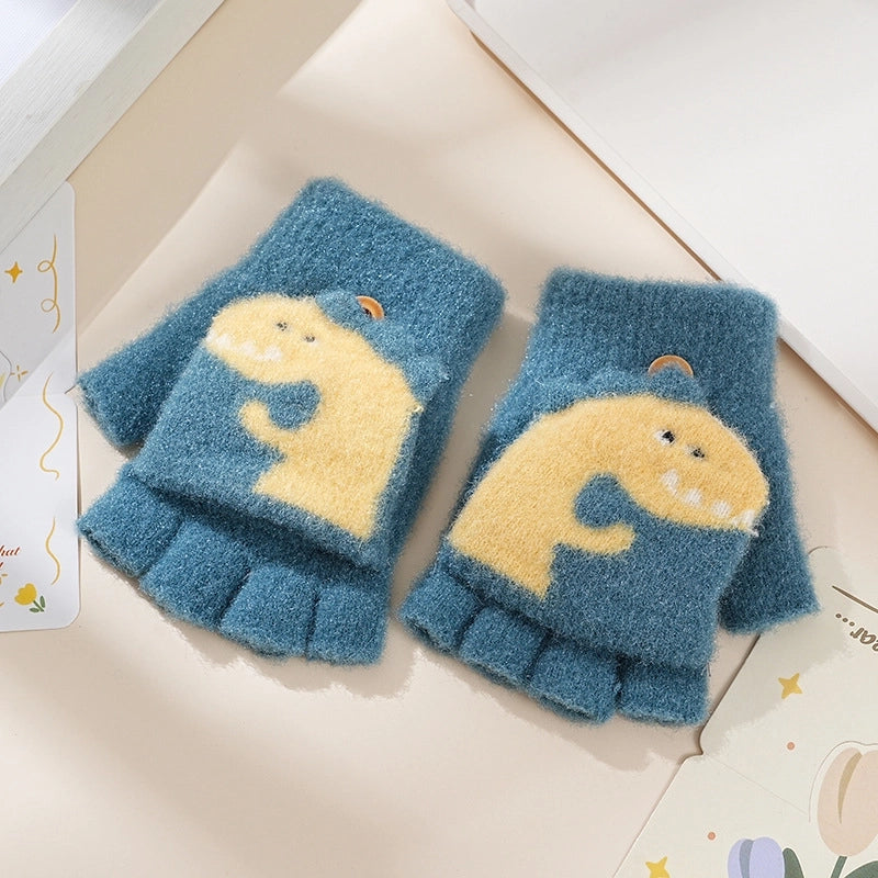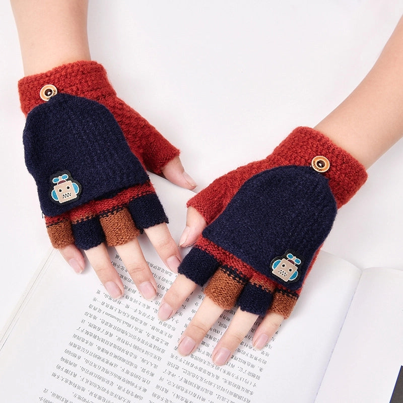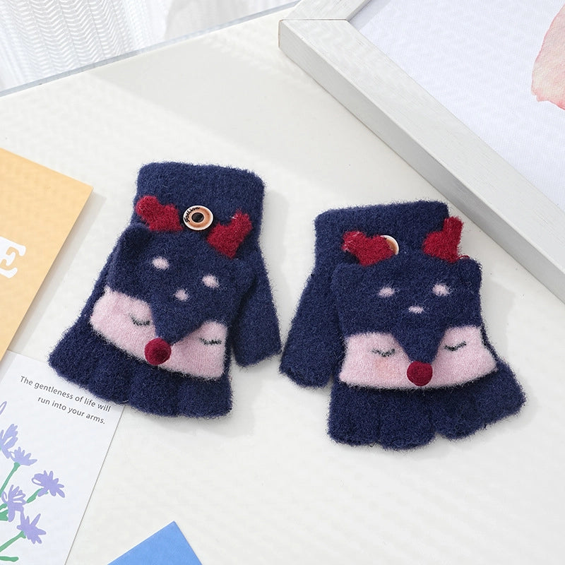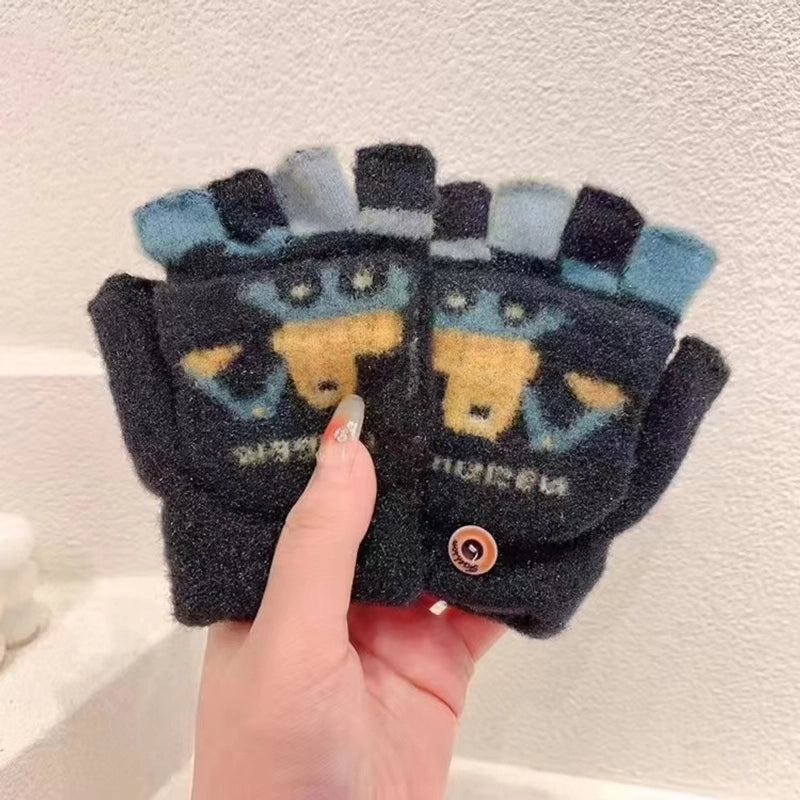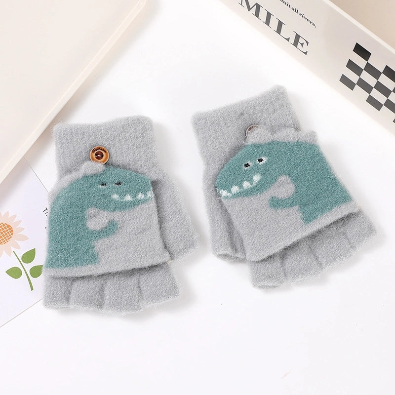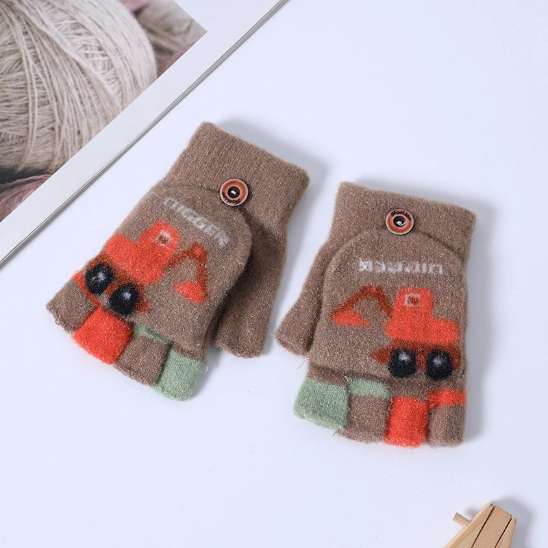 Autumn And Winter Children's Flip Knitted Gloves Half Finger Dual-purpose Boys And Girls Cute Warm Exposed Fingers Children Students 11