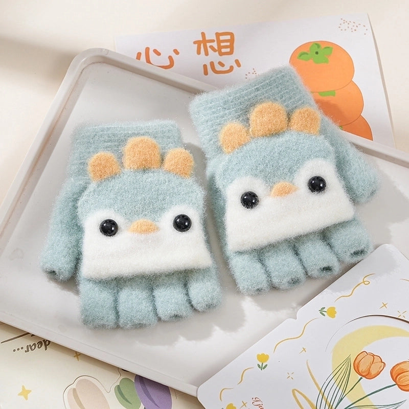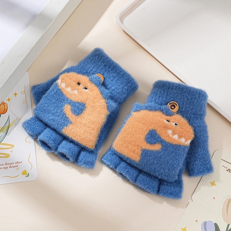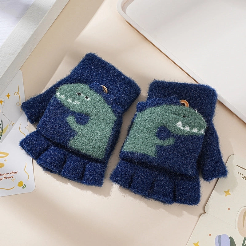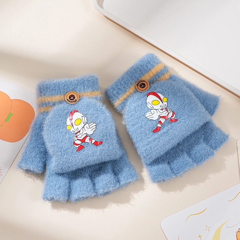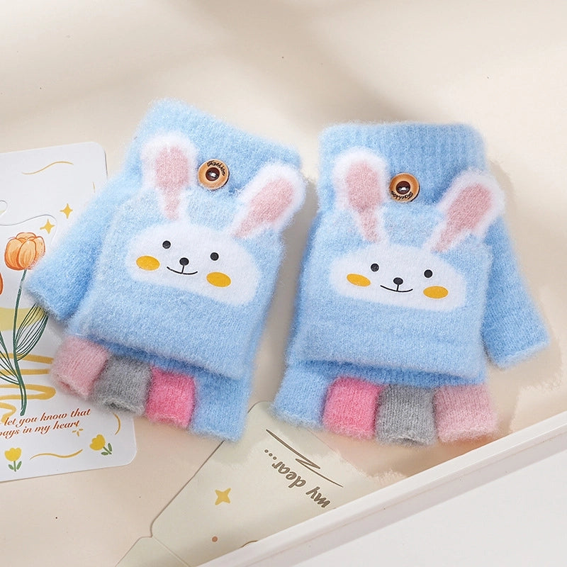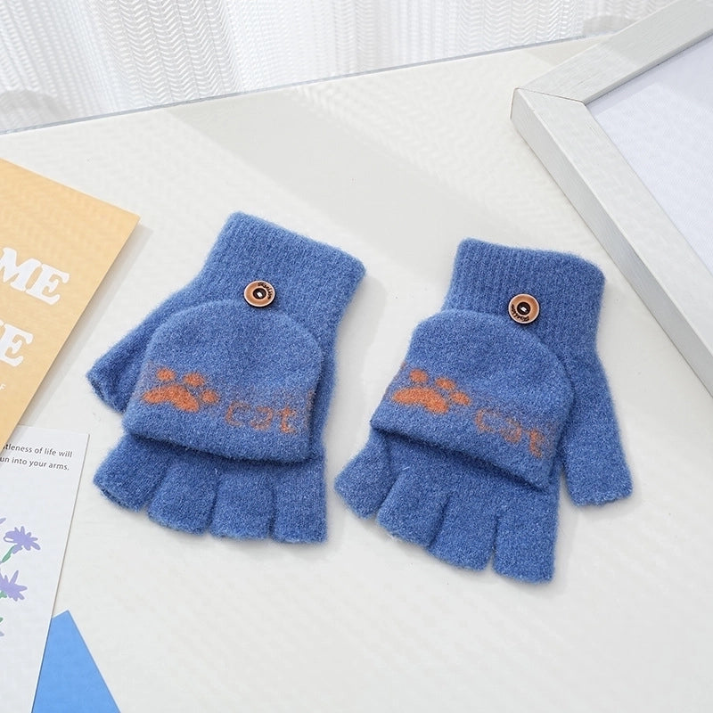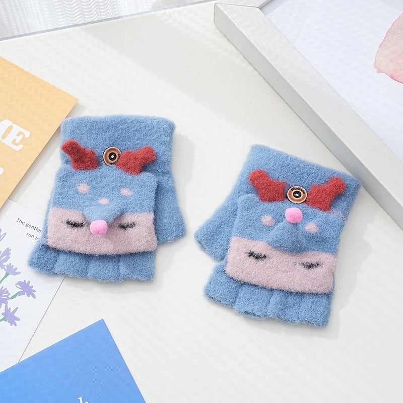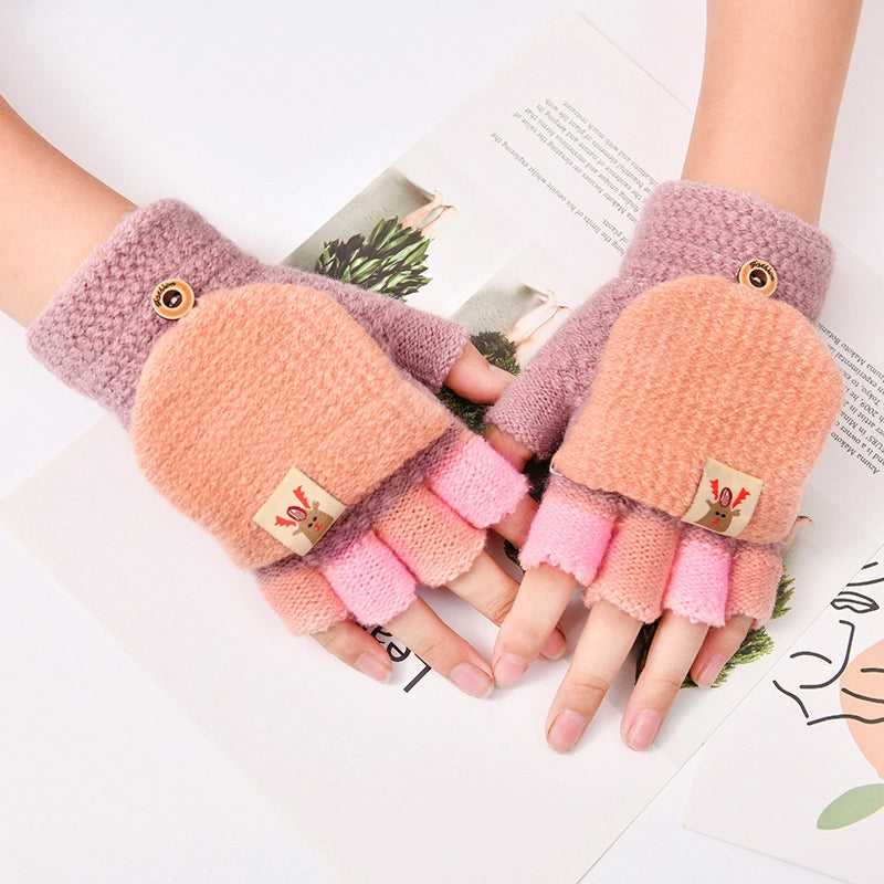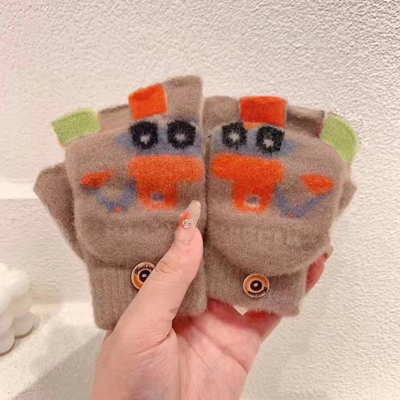 Autumn And Winter Children's Flip Knitted Gloves Half Finger Dual-purpose Boys And Girls Cute Warm Exposed Fingers Children Students 11